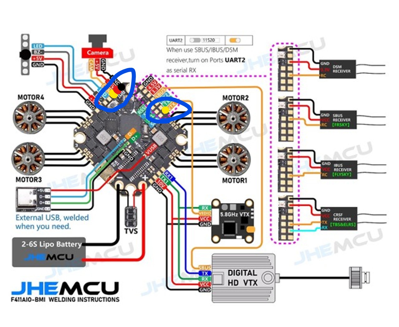 This tutorial involves soldering so if you're not interested in that, head on our now. Let's take a look at the diagram of the GHF411 Board we're using and notice the solder pads I've highlighted. You can go ahead and pre-tin those pads so we can get started.